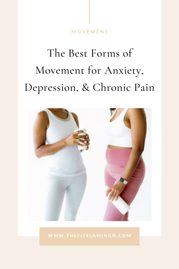 With today’s podcast episode, I wanted to share a few forms of movement that help anxiety, depression, and chronic pain. Click the link above to listen to the full episode on your favorite podcast platform (it’s only 5 minutes long!) or read the show notes below.